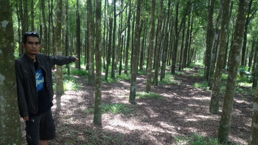 Maharani menunjuk pohon gaharu yang rimbun | Source: Maharani.