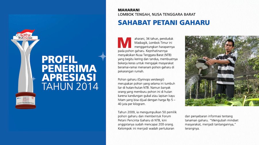 Ibarat gaharu yang setiap bagiannya memiliki manfaat, Maharani berharap juga bisa terus memberi arti bagi lingkungan dan masyarakat. Ia ingin jejak yang ia tinggalkan bukan hanya berupa pohon-pohon yang tumbuh di lahan kritis, tetapi juga pengetahuan, kepercayaan diri, dan peluang yang tumbuh untuk para petani.